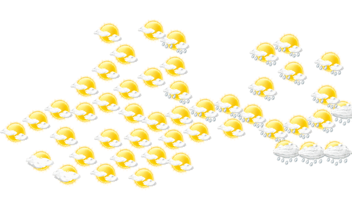 In Alturas de San Sauci zeigt sich morgens die Sonne nur vereinzelt bei sonst wolkigem Himmel bei Werten von 25°C. Darüber hinaus sollte von mittags bis zum Abend hin der Schirm nicht vergessen werden, da es regnet bei Temperaturen von 25 bis 31°C. In der Nacht sind anhaltende Regen-Schauer zu erwarten bei Werten von 25°C.