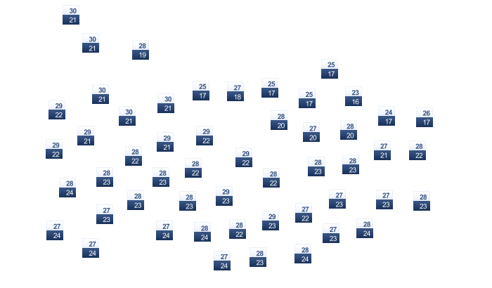 | 28 | 29 | 29 | 30 | 31 | 31 | 31 | 32 | 32 | 31 | 30 | 29 |