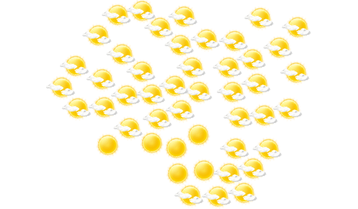 In San Sebastián strahlt morgens die Sonne bei Werten von 20°C. Des Weiteren gibt es vom Nachmittag bis abends überwiegend blauen Himmel mit vereinzelten Wolken bei Temperaturen von 21 bis 31°C. Nachts ist es wolkenlos bei Werten von 20°C.
