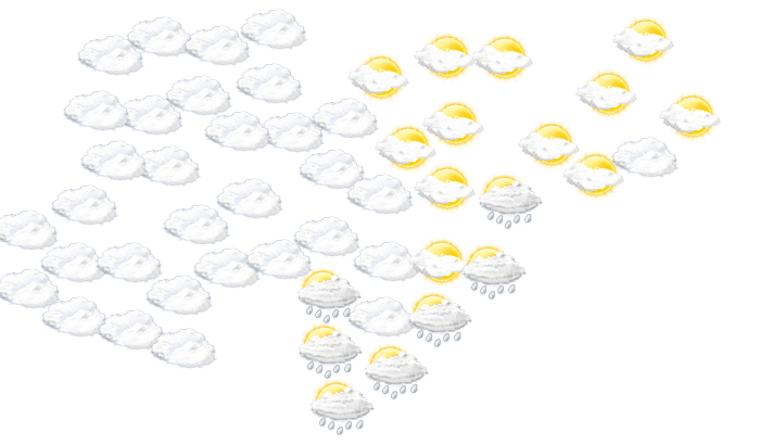 In Brenas ist es regnerisch bei Werten von 23°C. Des Weiteren ist es mittags und auch abends vielfach wolkig, gebietsweise kann sich auch die Sonne durchsetzen und die Temperaturen liegen zwischen 23 und 26 Grad. In der Nacht stören nur einzelne Wolken den sonst klaren Himmel bei Tiefsttemperaturen von 21°C.