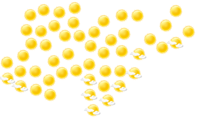 In Miranda scheint morgens die Sonne bei Temperaturen von 22°C. Am Mittag bilden sich vereinzelt Wolken und die Höchstwerte liegen bei 29°C. Abends gibt es in Miranda keine Wolken bei Werten von 22 bis zu 23°C. Nachts gibt es keine Wolken und die Sterne sind klar zu erkennen bei Tiefsttemperaturen von 22°C.