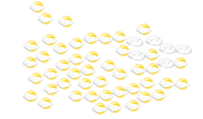 In Yauco kommt es am Tag zu einem Mix aus Sonne und Wolken und die Temperaturen liegen zwischen 24 und 30°C. In der Nacht ziehen Wolkenfelder durch und das Thermometer fällt auf 23°C.