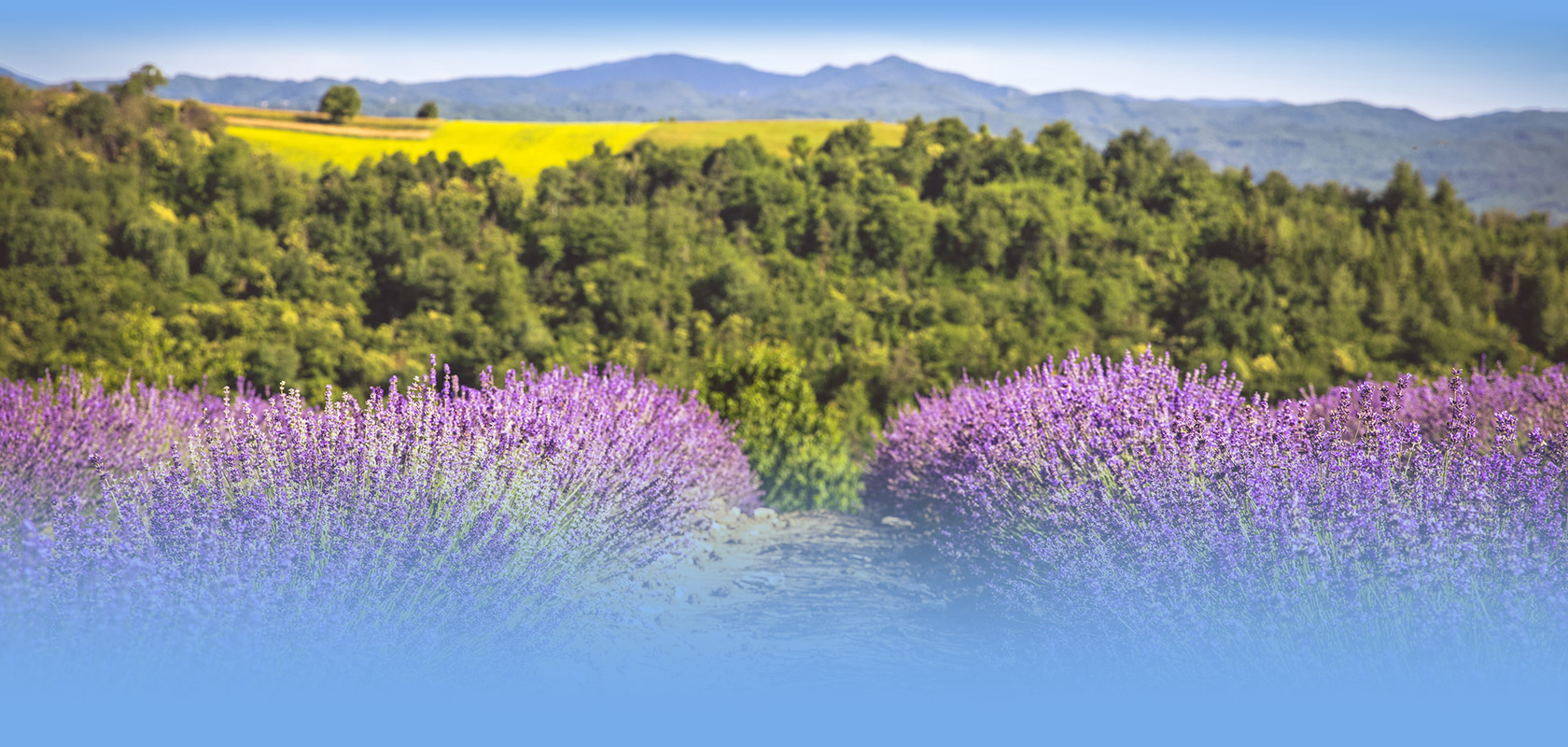 Von Mitte Juni bis Mitte Juli trägt die Landschaft ihr lilafarbenes Kleid. In Valensole in der Haute-Provence und in Sale San Giovanni in Italien gesellt sich das leuchtende Gelb des Currykrauts und der Sonnenblumen zur violetten Pracht – und macht den Farbenrausch perfekt.