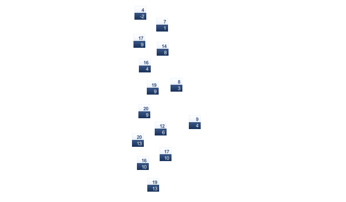 | 4 | 6 | 10 | 14 | 20 | 24 | 27 | 26 | 23 | 17 | 11 | 6 |