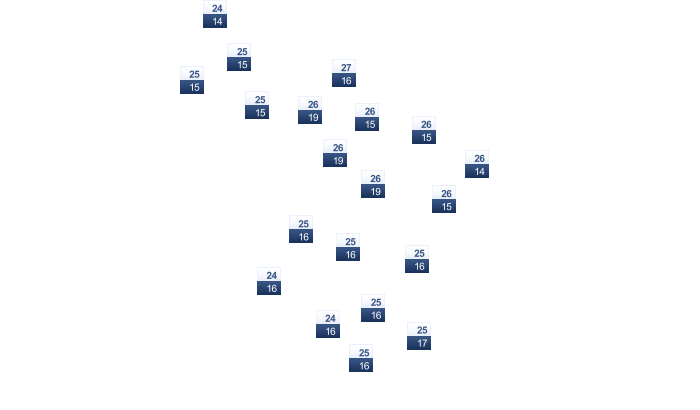 | 25 | 25 | 25 | 24 | 24 | 24 | 26 | 27 | 27 | 26 | 25 | 25 |