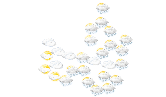 In Klausenburg schneit es am Morgen und die Temperatur liegt bei -4°C. Des Weiteren bleibt vom Nachmittag bis abends die Wolkendecke geschlossen bei Temperaturen von -6 bis -3°C. Nachts sind Teile des Himmels mit Wolken bedeckt und die Werte gehen auf -7°C zurück. Mit Geschwindigkeiten von 12 bis 19 km/h weht der Wind aus nordwestlicher bis westlicher Richtung. Böen können Geschwindigkeiten zwischen 35 und 46 km/h erreichen.