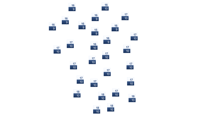 | 1 | 3 | 10 | 18 | 24 | 27 | 30 | 30 | 25 | 18 | 10 | 4 |