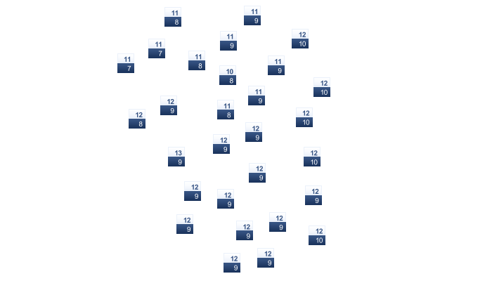 1 | 3 | 10 | 18 | 24 | 27 | 30 | 30 | 25 | 18 | 10 | 4 |