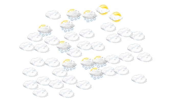 In Radautz schneit es am Morgen bei Werten von -2°C. Im weiteren Verlauf des Tages ist es mittags und auch abends wolkig bei Temperaturen von -5 bis -1°C. In der Nacht ist es bedeckt und die Temperatur fällt auf -6°C. Böen können Geschwindigkeiten zwischen 14 und 34 km/h erreichen.