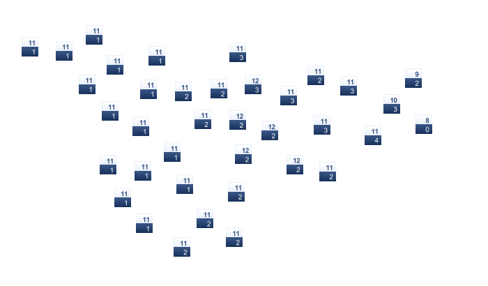 | 1 | 3 | 10 | 18 | 24 | 27 | 30 | 30 | 25 | 18 | 10 | 4 |