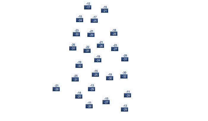 | -16 | -16 | -13 | -5 | 2 | 8 | 11 | 10 | 5 | -1 | -7 | -13 |