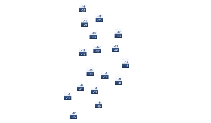 | -16 | -16 | -13 | -5 | 2 | 8 | 11 | 10 | 5 | -1 | -7 | -13 |