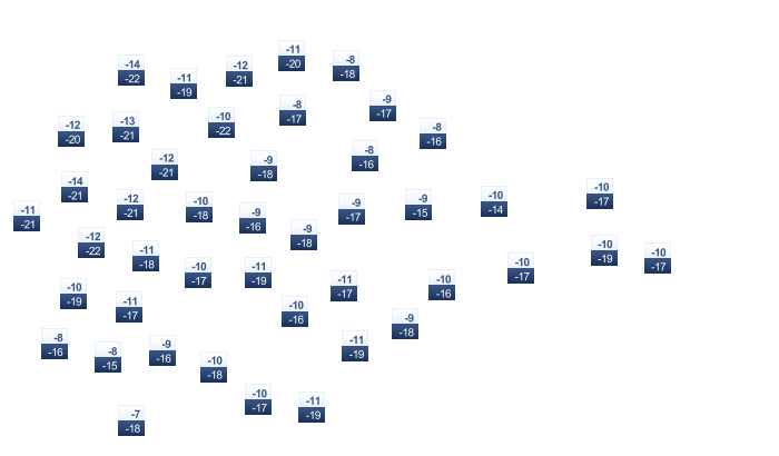 | -16 | -16 | -13 | -5 | 2 | 8 | 11 | 10 | 5 | -1 | -7 | -13 |