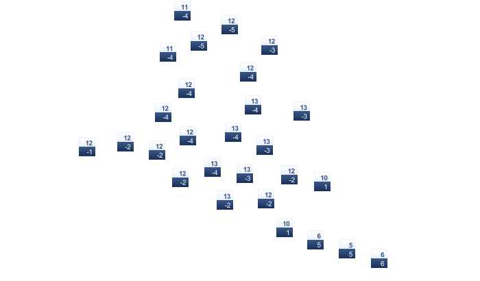 | -16 | -16 | -13 | -5 | 2 | 8 | 11 | 10 | 5 | -1 | -7 | -13 |