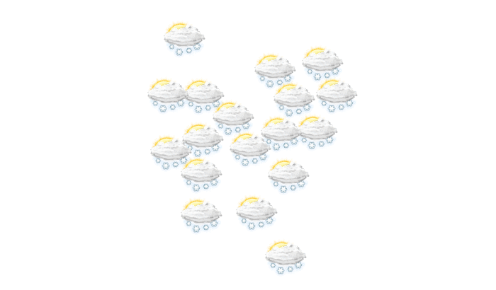 In Vyatskiye Polyany überwiegt morgens dichte Bewölkung aber es bleibt trocken bei Werten von -7°C. Darüber hinaus fällt vom Nachmittag bis abends Schnee bei Werten von -3 bis zu 0°C. Nachts kommt es zu Schneefällen bei einer Temperatur von 0°C. Böen können Geschwindigkeiten zwischen 22 und 25 km/h erreichen.