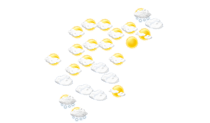 In Workuta kommt es am Morgen zu Schneefällen bei Temperaturen von -21°C. Im weiteren Verlauf des Tages ist es am Nachmittag und am Abend leicht bewölkt bei Werten von -26 bis zu -22°C. In der Nacht stören nur einzelne Wolken den sonst klaren Himmel bei Tiefstwerten von -26°C.