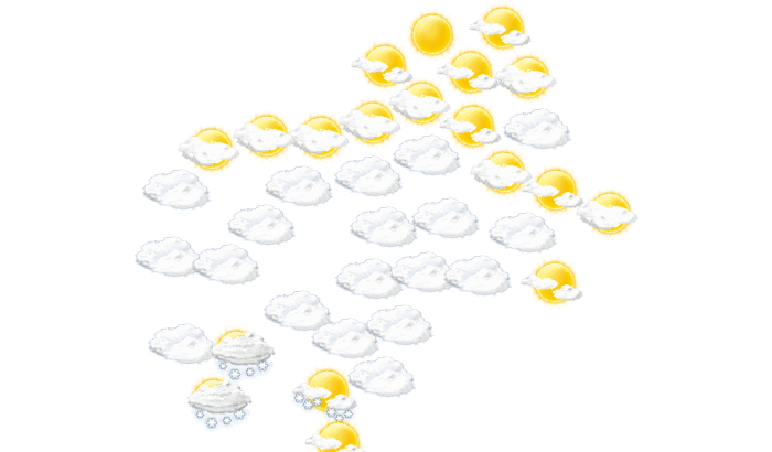In Ola bleibt bis zum Nachmittag die Wolkendecke geschlossen und die Temperaturen liegen zwischen -4 und -2°C. Am Abend kommt es in Ola zu Schneefällen bei Temperaturen von -3 bis -2°C. In der Nacht kommt es zu Schneefällen bei einer Temperatur von -4°C. Mit Geschwindigkeiten von 5 bis 21 km/h weht der Wind aus nördlicher bis östlicher Richtung.