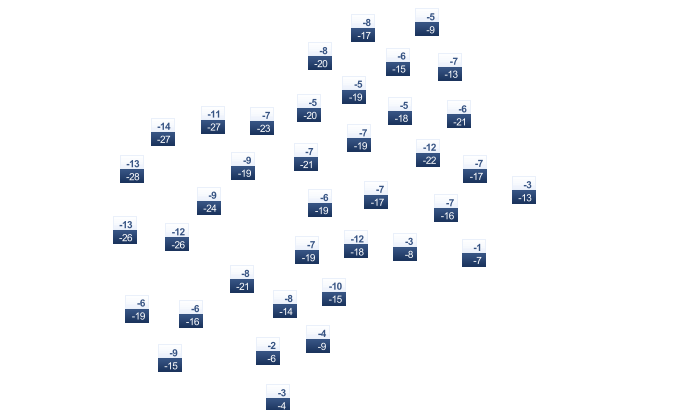 | -16 | -16 | -13 | -5 | 2 | 8 | 11 | 10 | 5 | -1 | -7 | -13 |