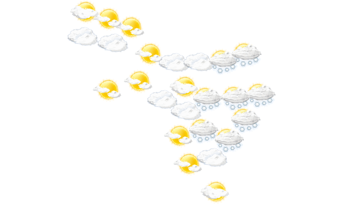 In Sawitinsk überwiegt vormittags und auch am Nachmittag dichte Bewölkung aber es bleibt trocken bei Temperaturen von -6 bis -1°C. Abends gibt es in Sawitinsk nur selten Lücken in der Wolkendecke bei Werten von -6°C. Nachts gibt es nur selten Lücken in der Wolkendecke bei Tiefsttemperaturen von -8°C.