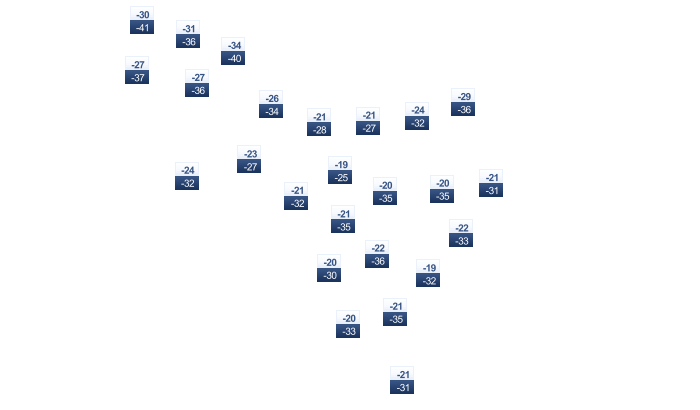 | -9 | -9 | -4 | 4 | 10 | 17 | 21 | 18 | 12 | 4 | -2 | -7 |