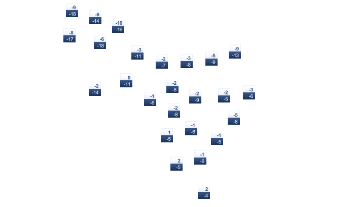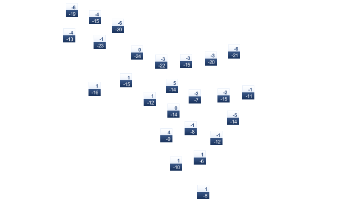 | -16 | -16 | -13 | -5 | 2 | 8 | 11 | 10 | 5 | -1 | -7 | -13 |