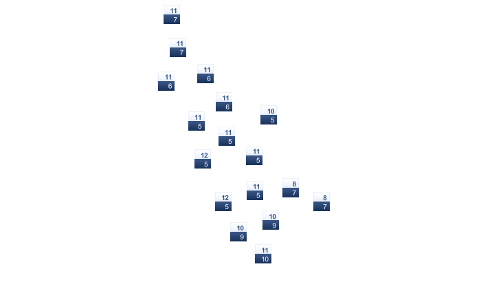 | -16 | -16 | -13 | -5 | 2 | 8 | 11 | 10 | 5 | -1 | -7 | -13 |