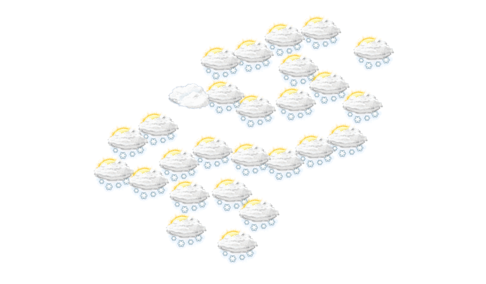 In Lyudinovo gibt es am Tag Schnee bei Temperaturen von -3 bis -2°C. Nachts bleibt es bedeckt und das Thermometer fällt auf -4°C. Böen können Geschwindigkeiten zwischen 20 und 28 km/h erreichen.