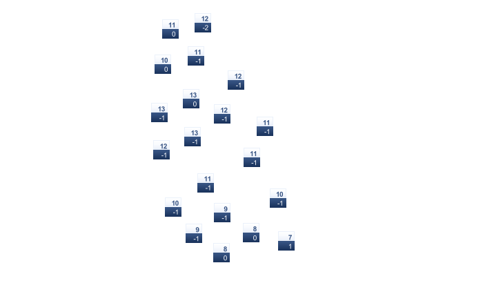 | -16 | -16 | -13 | -5 | 2 | 8 | 11 | 10 | 5 | -1 | -7 | -13 |