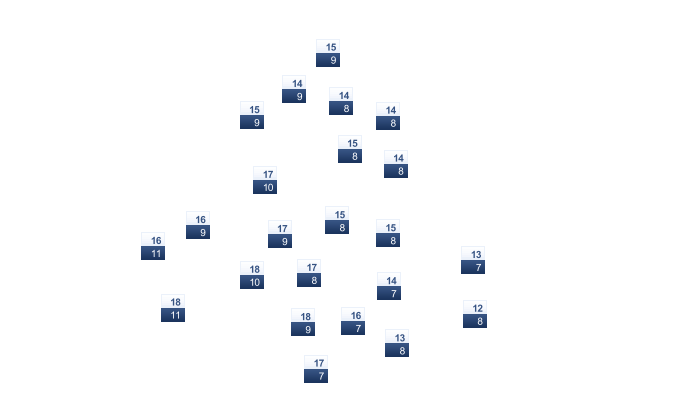 | -16 | -16 | -13 | -5 | 2 | 8 | 11 | 10 | 5 | -1 | -7 | -13 |