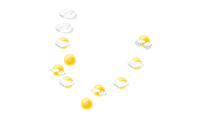 In Kholmsk ziehen morgens Wolkenfelder durch und die Temperatur liegt bei -5°C. Im weiteren Verlauf des Tages strahlt vom Nachmittag bis abends die Sonne bei Werten von -1 bis zu 0°C. Nachts ist es wolkenlos bei Tiefsttemperaturen von 0°C.