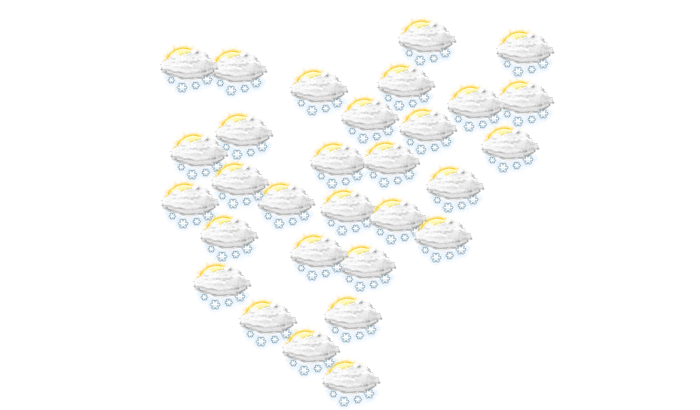 In Wjasma kommt es den ganzen Tag zu Schneefällen bei Werten von -15 bis zu -8°C. In der Nacht kommt es zu Schneefällen bei Tiefsttemperaturen von -8°C. Mit Böen zwischen 22 und 38 km/h ist zu rechnen.
