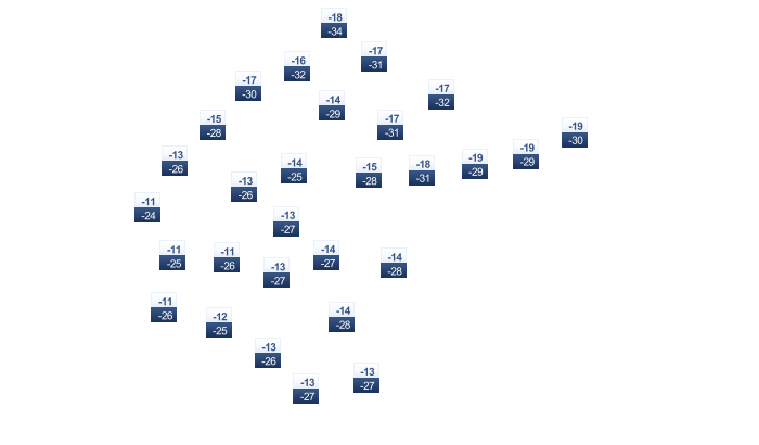 | -16 | -16 | -13 | -5 | 2 | 8 | 11 | 10 | 5 | -1 | -7 | -13 |