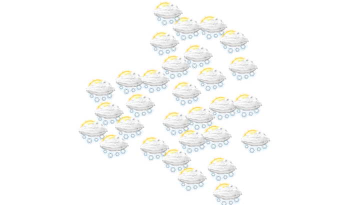 In Alexin kommt es den ganzen Tag zu Schneefällen und die Temperaturen liegen zwischen -5 und -3°C. In der Nacht fällt Schnee bei Tiefstwerten von -3°C. Böen können Geschwindigkeiten zwischen 18 und 27 km/h erreichen.