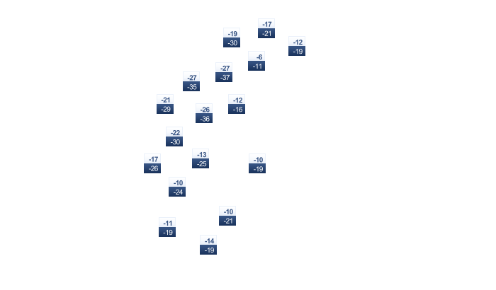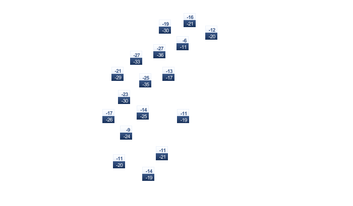 | -16 | -16 | -13 | -5 | 2 | 8 | 11 | 10 | 5 | -1 | -7 | -13 |