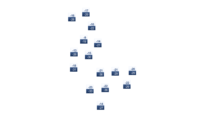 | -16 | -16 | -13 | -5 | 2 | 8 | 11 | 10 | 5 | -1 | -7 | -13 |
