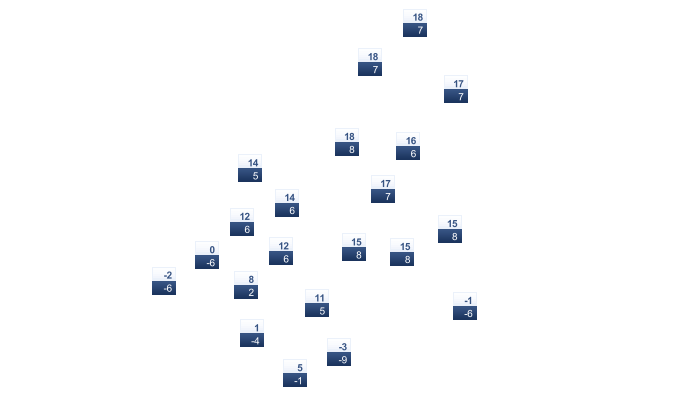 | -16 | -16 | -13 | -5 | 2 | 8 | 11 | 10 | 5 | -1 | -7 | -13 |