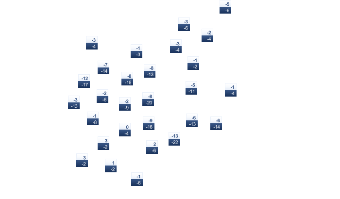 -9 | -9 | -4 | 4 | 10 | 17 | 21 | 18 | 12 | 4 | -2 | -7 |