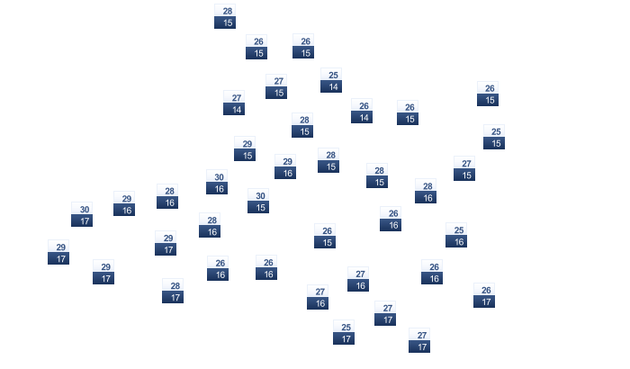 | 16 | 17 | 17 | 16 | 13 | 10 | 10 | 11 | 14 | 17 | 17 | 17 |
