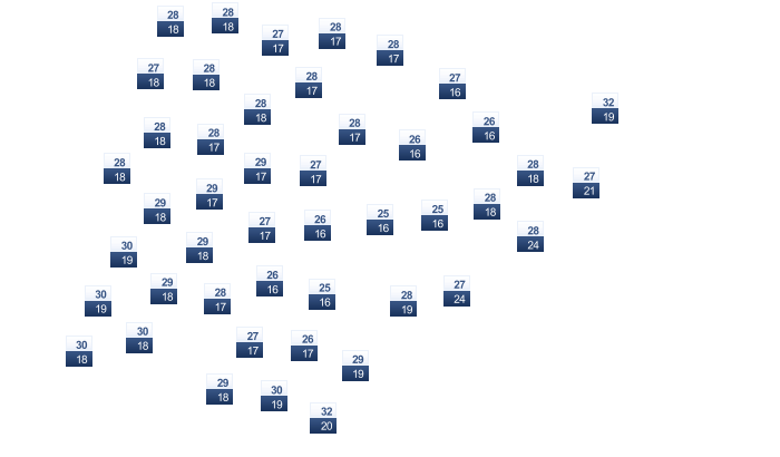 | 26 | 26 | 26 | 26 | 26 | 24 | 25 | 26 | 30 | 31 | 28 | 27 |