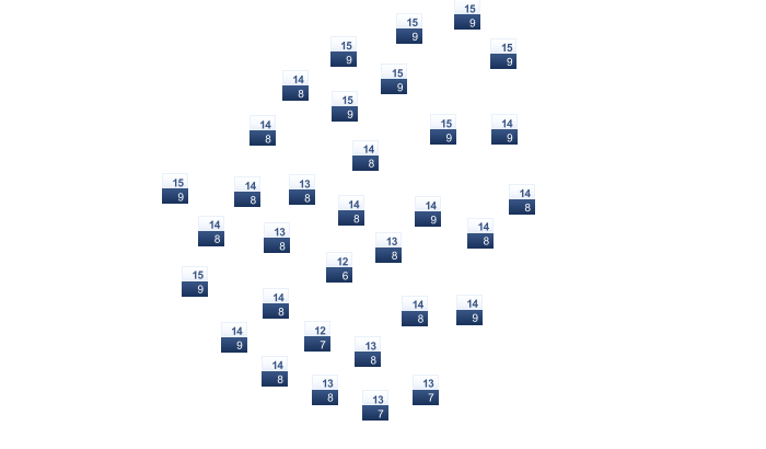 | 2 | 3 | 4 | 8 | 12 | 16 | 19 | 19 | 15 | 11 | 7 | 3 |