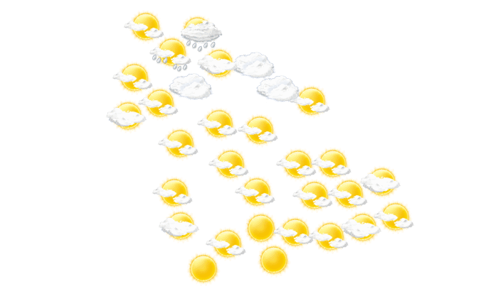 In Medina gibt es morgens eine Mischung aus Sonne und Wolken und die Temperatur liegt bei 19°C. Gegen später sind Teile des Himmels mit Wolken bedeckt, die Sonne ist aber zwischendurch sichtbar und die Höchstwerte liegen bei 28°C. Am Abend fällt in Medina vereinzelt etwas Regen und die Temperaturen liegen zwischen 23 und 25 Grad. In der Nacht kann es immer mal wieder regnen bei Werten von 20°C. Mit Geschwindigkeiten von 10 bis 31 km/h weht der Wind aus südwestlicher bis westlicher Richtung.