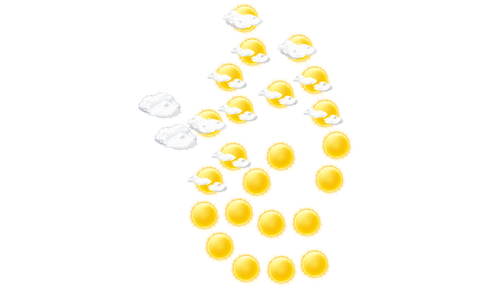 | 20 | 23 | 28 | 33 | 39 | 42 | 43 | 43 | 40 | 35 | 28 | 22 |
