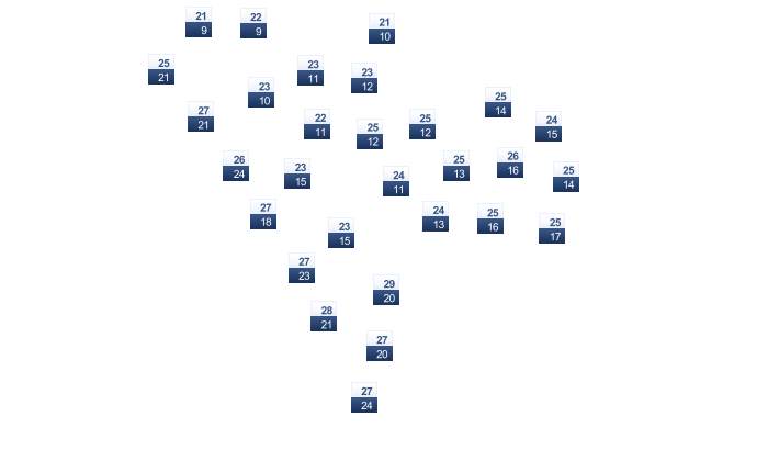 | 8 | 9 | 13 | 18 | 22 | 24 | 26 | 25 | 22 | 18 | 13 | 10 |