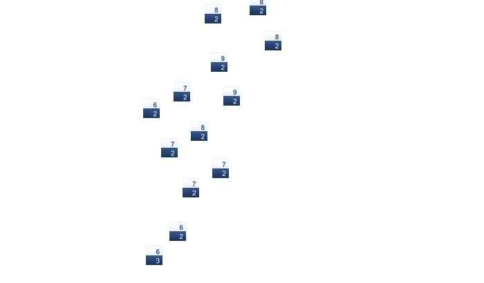 | 2 | 3 | 5 | 9 | 14 | 19 | 20 | 21 | 17 | 11 | 7 | 5 |