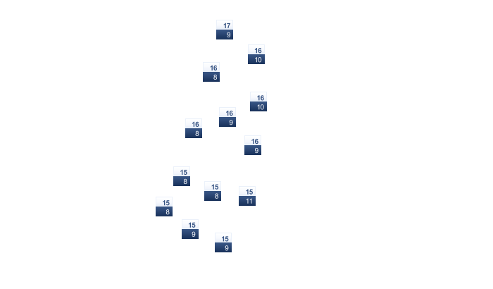 2 | 3 | 5 | 9 | 14 | 19 | 20 | 21 | 17 | 11 | 7 | 5 |
