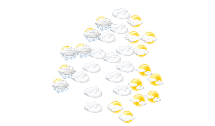 In Kiruna kann sich von morgens bis zum Nachmittag die Sonne nicht durchsetzen und es bleibt bedeckt bei Werten von -6 bis zu -1°C. Abends sind in Kiruna anhaltende Schauer zu erwarten bei Temperaturen von -6°C. Nachts bleibt die Wolkendecke geschlossen bei Werten von 0°C. Böen können Geschwindigkeiten zwischen 18 und 33 km/h erreichen.