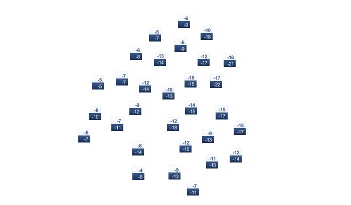 | 2 | 3 | 5 | 9 | 14 | 19 | 20 | 21 | 17 | 11 | 7 | 5 |