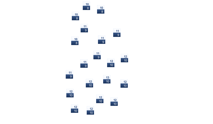 2 | 3 | 5 | 9 | 14 | 19 | 20 | 21 | 17 | 11 | 7 | 5 |
