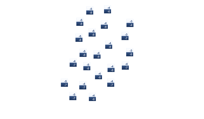 | 2 | 3 | 5 | 9 | 14 | 19 | 20 | 21 | 17 | 11 | 7 | 5 |