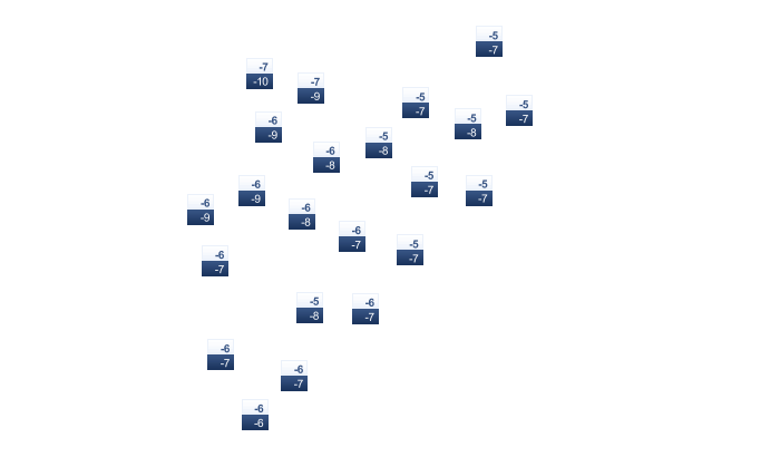 | 2 | 3 | 5 | 9 | 14 | 19 | 20 | 21 | 17 | 11 | 7 | 5 |
